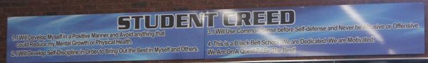 Field believes that karate lessons spill over into his students’ daily lives. By emphasizing the skills learned in the dojo, he is able to instill the “Student Creed” which is a statement of principles to ensure a positive setting in other settings.