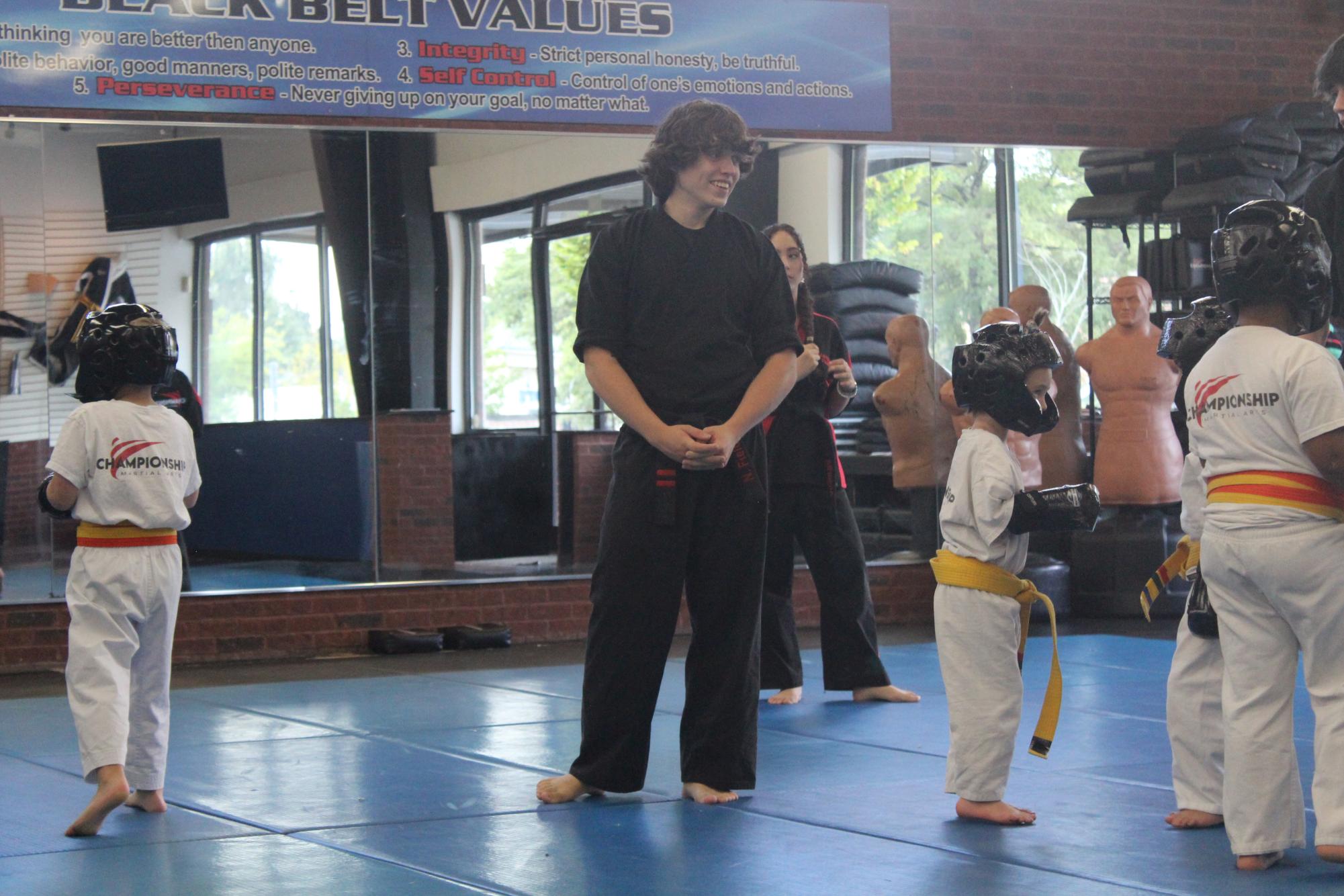 Senior Noah Field works at Championship Martial Arts, a karate dojo that has lessons for a vast range of age groups mainly consisting of younger students. In order to get to this position, Field has had extensive training from the same organization for nine years now.